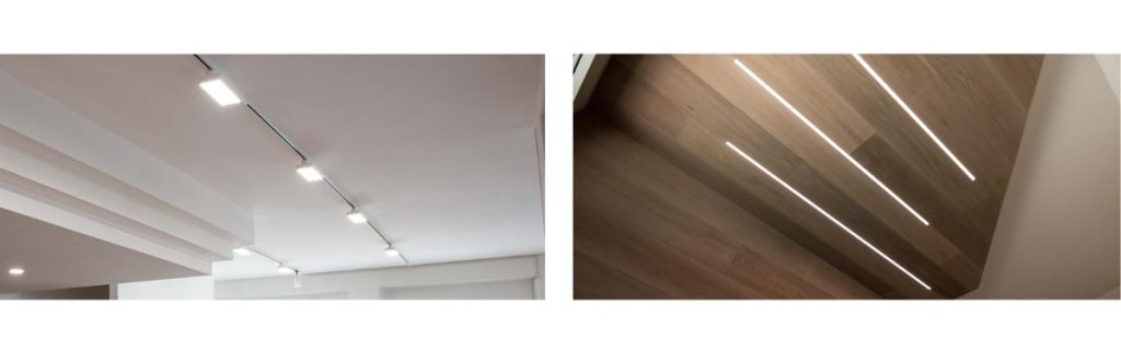 - I faretti direzionati, invece, sono perfetti per dare risalto a tavoli o dettagli specifici, come opere d’arte o elementi di design.