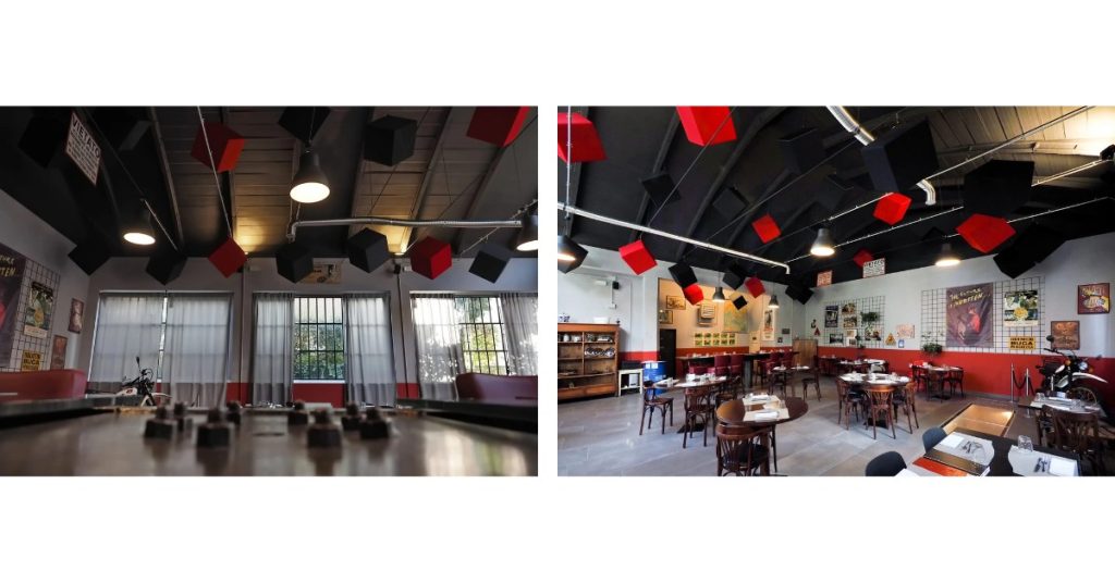 Prima dell’intervento, l’ambiente era sì affascinante, ma soffriva di un’acustica problematica a causa delle grandi superfici riflettenti e dei volumi spaziosi. Grazie ai Kubo, ora l’atmosfera è confortevole e piacevole per i clienti, che possono godersi la loro esperienza senza fastidiosi rumori di fondo.