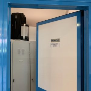 Abbiamo iniziato il lavoro nel mese di agosto 2022: prima abbiamo smontato e smaltito le vecchie strutture, poi siamo passati all’installazione delle nuove pareti divisorie, studiate nel dettaglio in collaborazione con lo studio Nereo Enne del geom. Stefano Nardini.