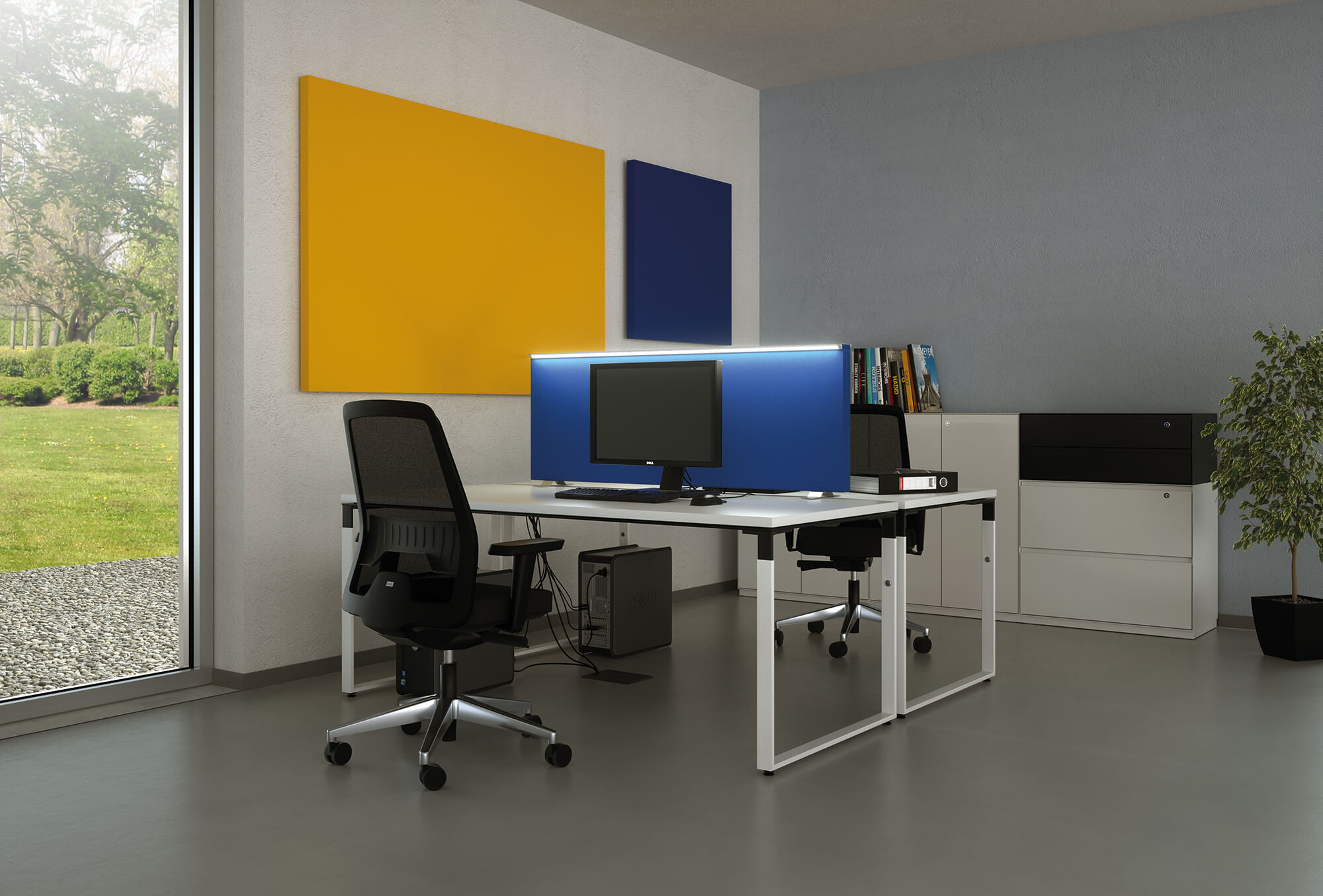 Spesso i soli pannelli da scrivania non sono sufficienti a garantire l’assorbimento ideale del suono, possono essere necessari altri elementi fonoassorbenti posizionati a parete, a soffitto o a terra.