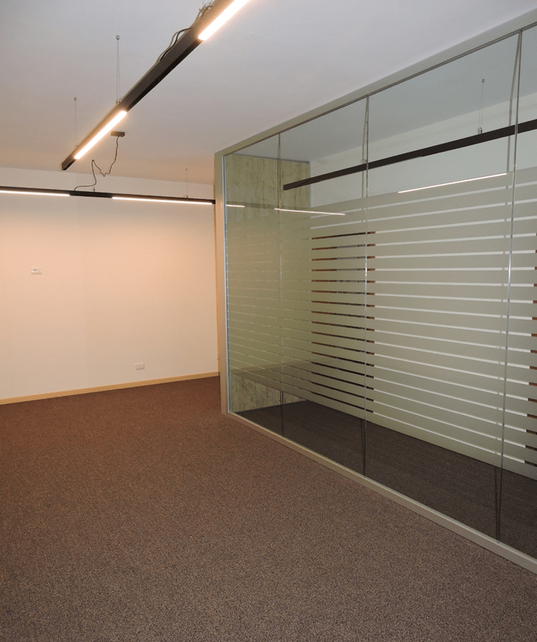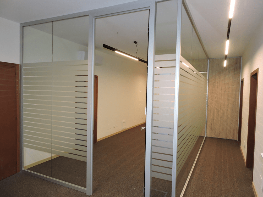 Le pareti divisorie vetrate permettono di poter avere una buona luminosità, mentre le vetrofanie , installate da nostri incaricati, garantiscono un effetto di riservatezza sia all’interno che all’esterno delle stanze.